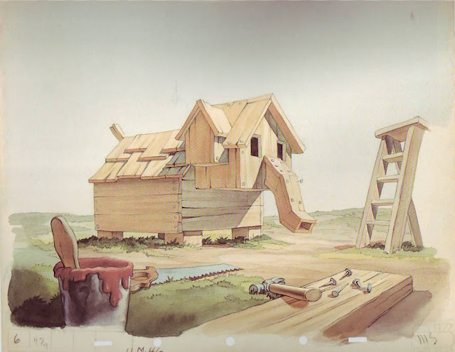 The problem is that audiences like color and so do I. I can't help it, I like beautiful cartoons. In my opinion the color mediums that best support the comedy/beauty combination are watercolor and gouache. Some of the best and most indisputably funny Ren & Stimpy episodes used acrylics but the acrylics were done in a style that often looked like gouache so they're difficult to classify.