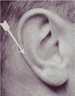 An awful lot of people are like Kali, with the ear favoring the back of the head.