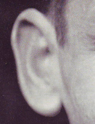 Another ear (above) without a fully-formed "Y." I include it here because the major chambers of the ear are symmetrical. Look at it, the top and bottom alcoves are the same size. This may be without meaning...on the other hand the person might be the Antichrist.