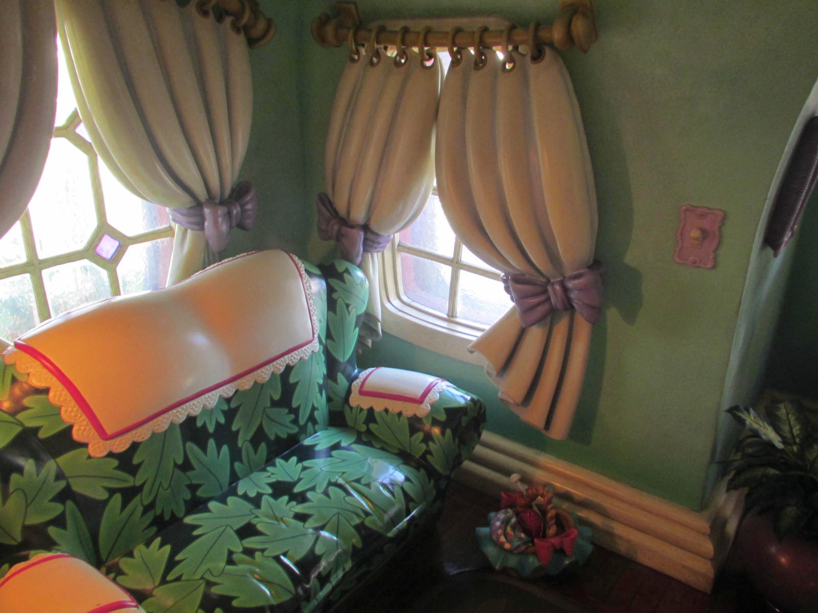 I like the storage area (above) in Mickey's house. Those green columns look great! Stained wood is the way to go, but stains need to be repainted every six years or so.
