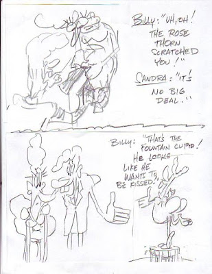 I'll bet I'll regret publishing these sketches. The drawing and acting sucks, the characters look different in every panel, mis-spelled words...it's a mess! The only reason I'm putting it up is because I know that if I put it in a desk drawer to rework another day, it'll never get done. Besides, if I don't post this then I'll be left without anything to put up tonight. OK, so here it is, flaws and all......"A Seasonal Place."